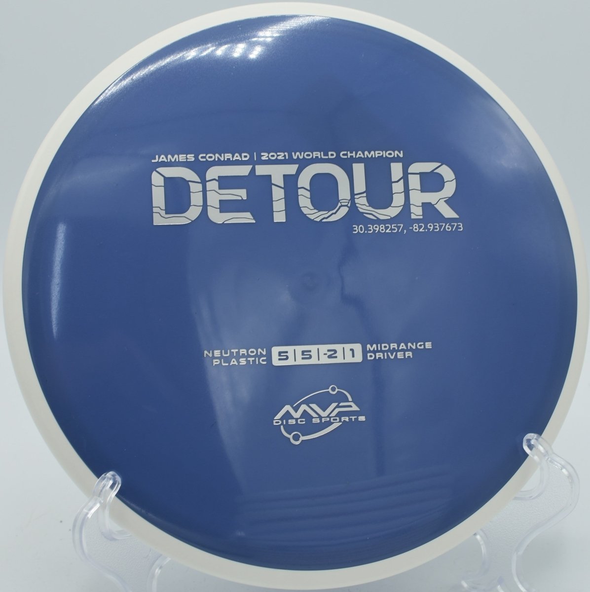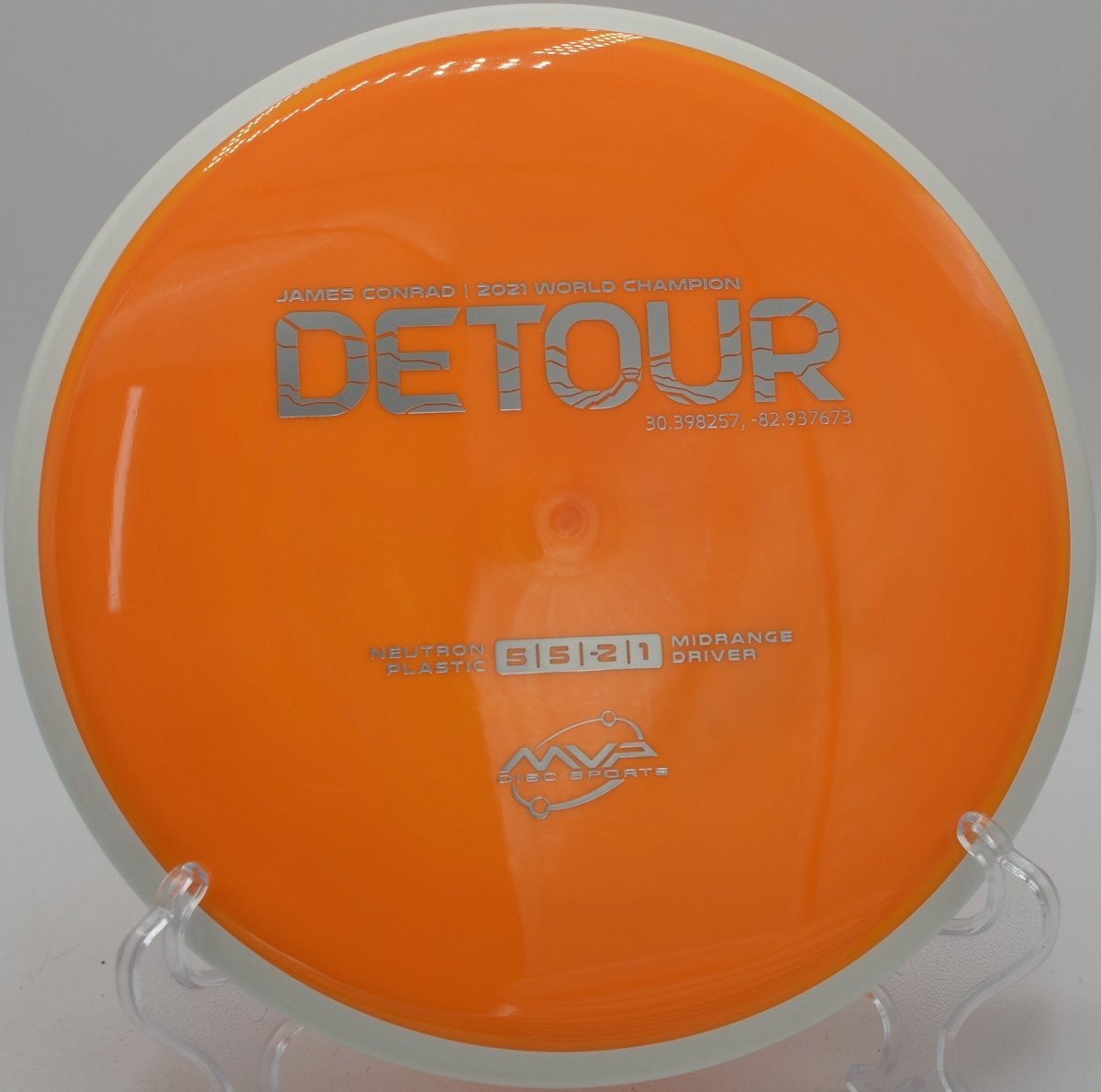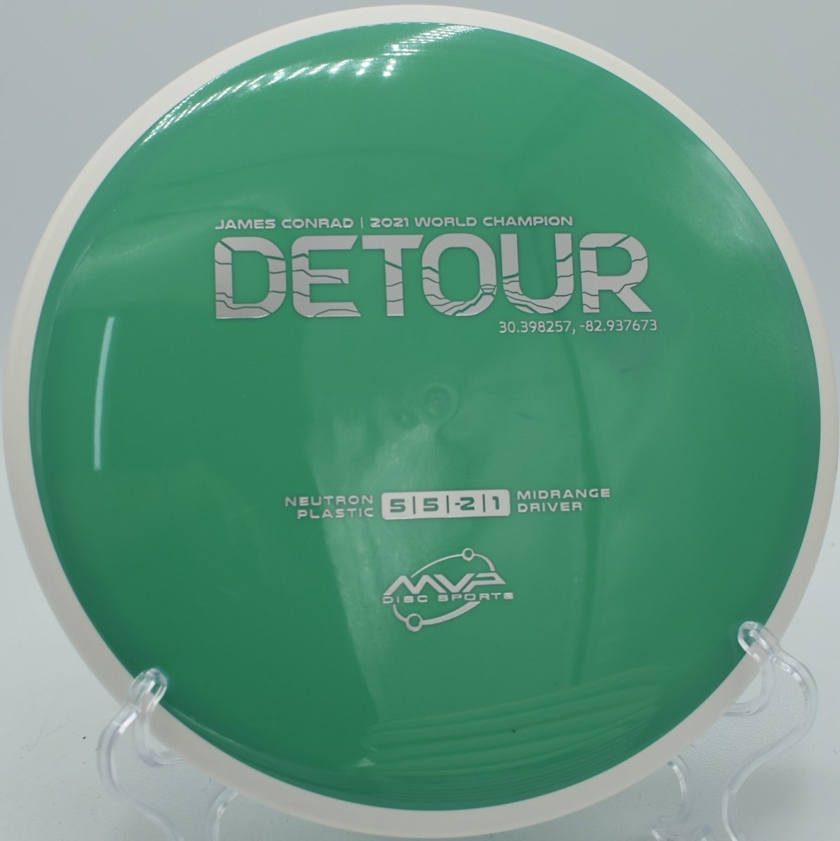 Molded in MVP’s premium Neutron plastic, the Detour offers excellent durability, consistent grip, and long-lasting flight characteristics. The Gyro® overmold design enhances rotational stability, helping the disc maintain forward momentum and glide during extended flights.