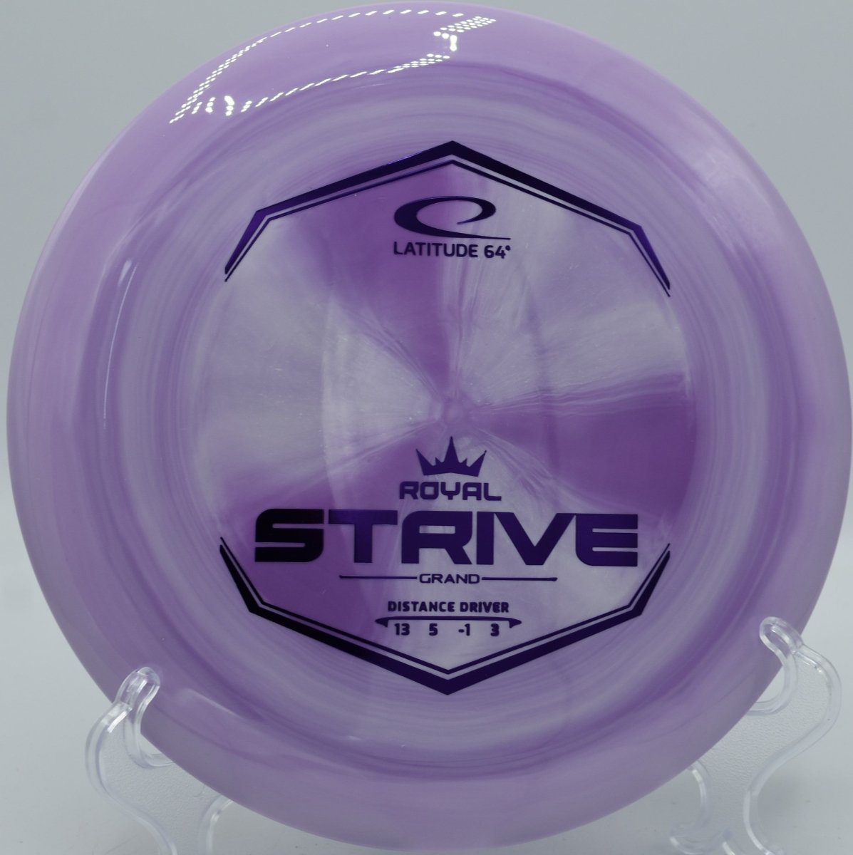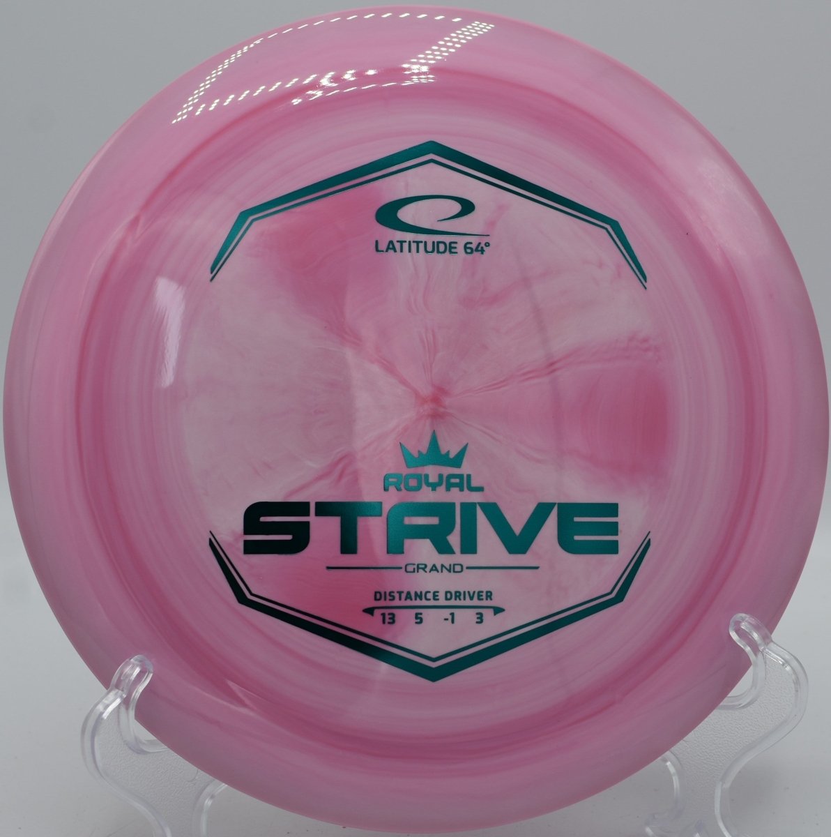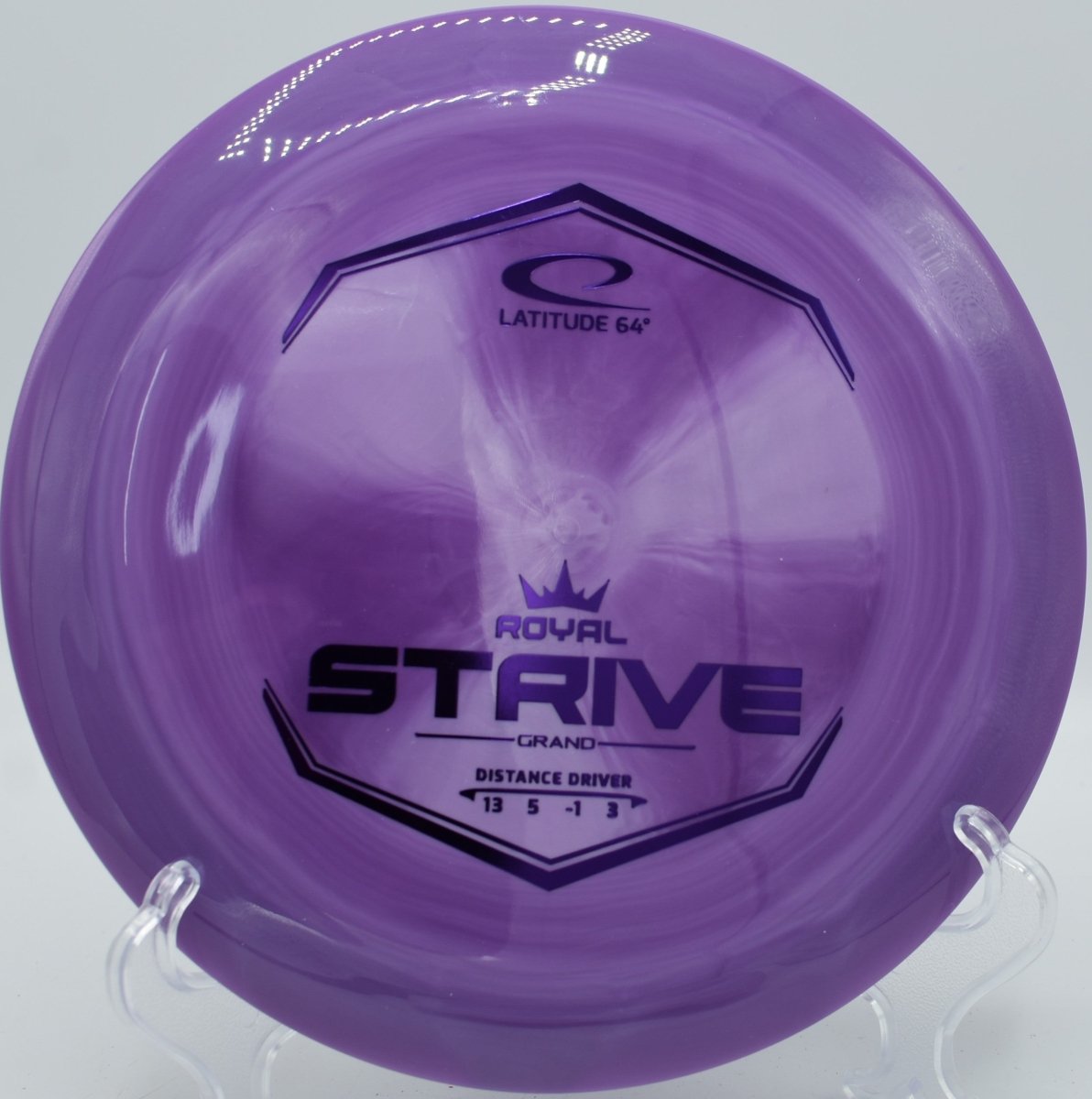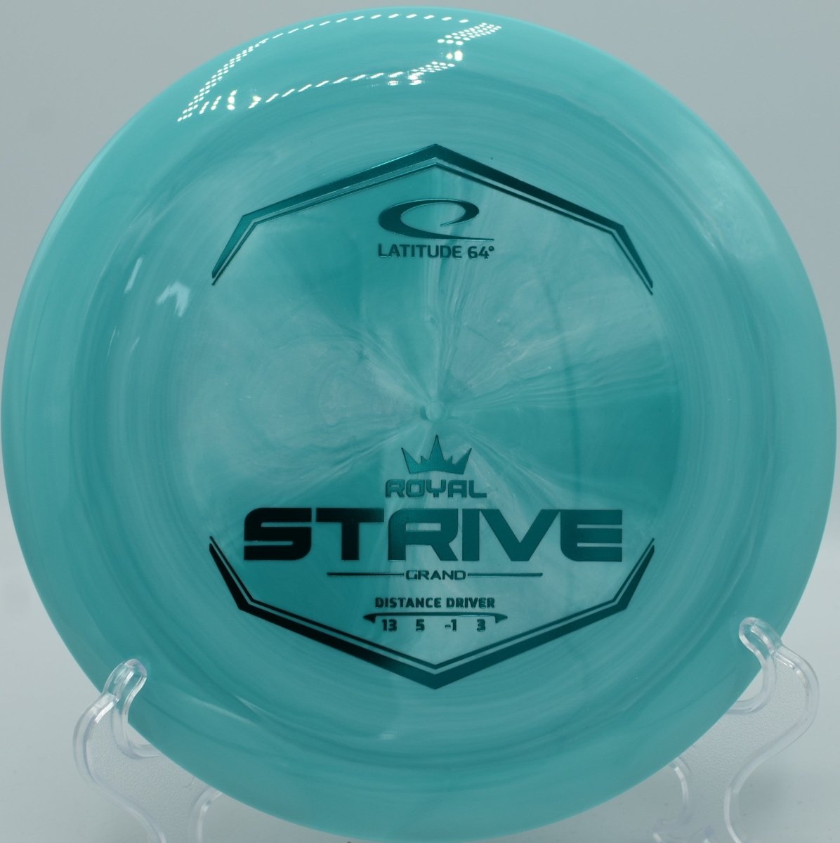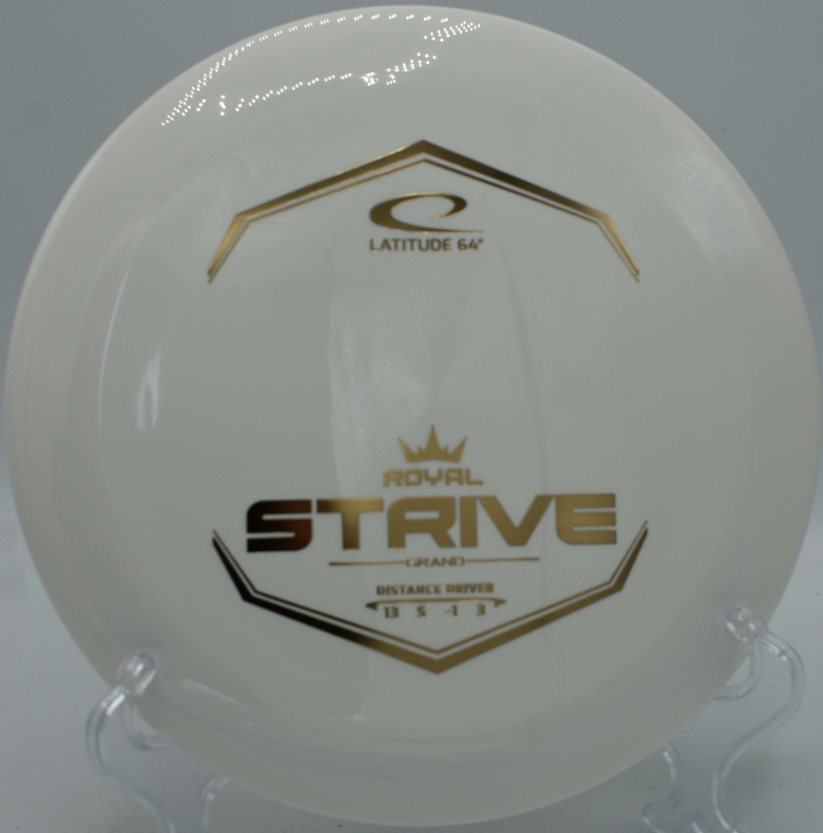 The Latitude 64° Grand Strive is a fast, stable distance driver designed for players seeking maximum distance with reliable control. Built in Latitude 64°’s premium Grand plastic from the Royal Line, the Strive offers excellent grip, durability, and a confident feel in the hand. With a balanced combination of glide, subtle turn, and dependable fade, the Strive is capable of producing long, controlled distance lines for players with moderate to high arm speed.