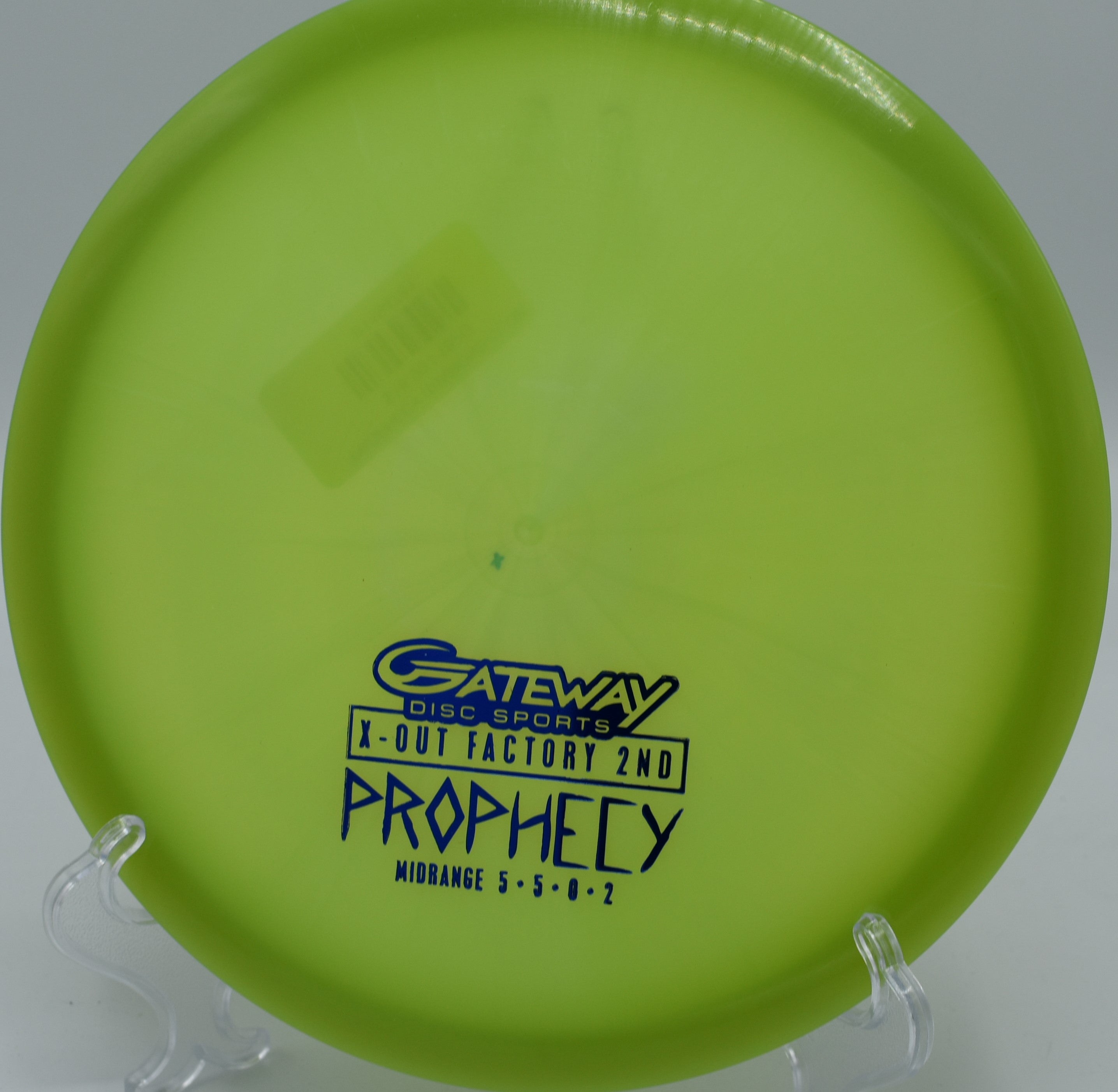 The Prophecy is a slightly overstable midrange disc with good glide and control. It could be compared to an Innova ROC, but with additional speed and glide. The Prophecy has a good resistance to turn and a gentle fade at the end of its flight.