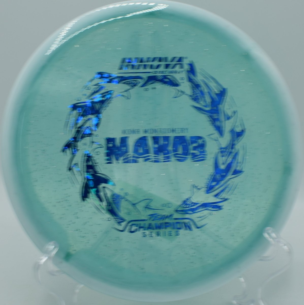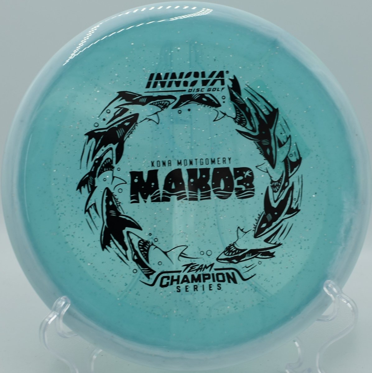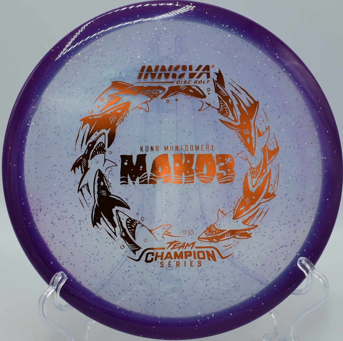 Halo Champion Metal Flake plastic combines Innova’s most durable Champion blend with embedded metal flake and a Halo-style rim, delivering premium feel, long-lasting flight integrity, and striking visual appeal. The added stability helps the disc resist turn while preserving the Mako3’s signature straight finish.