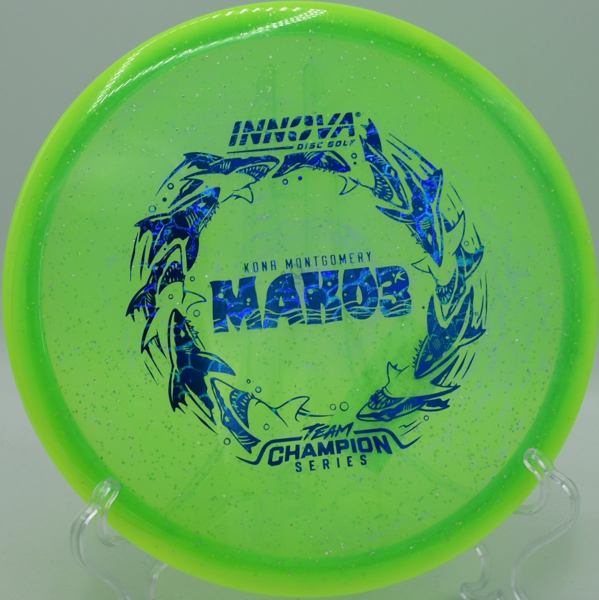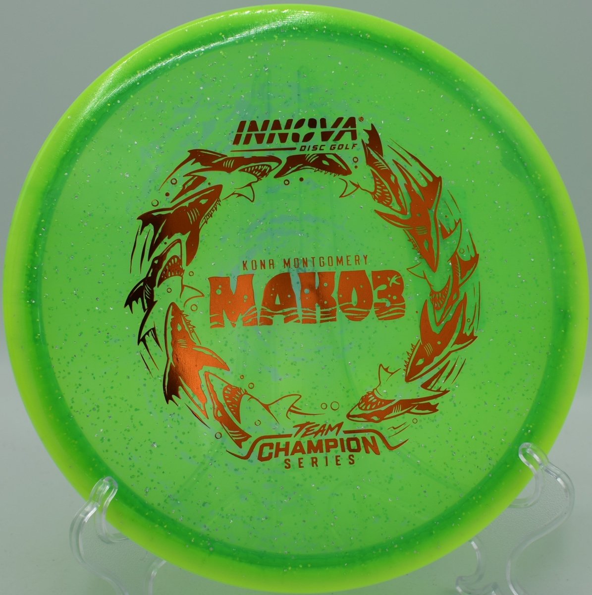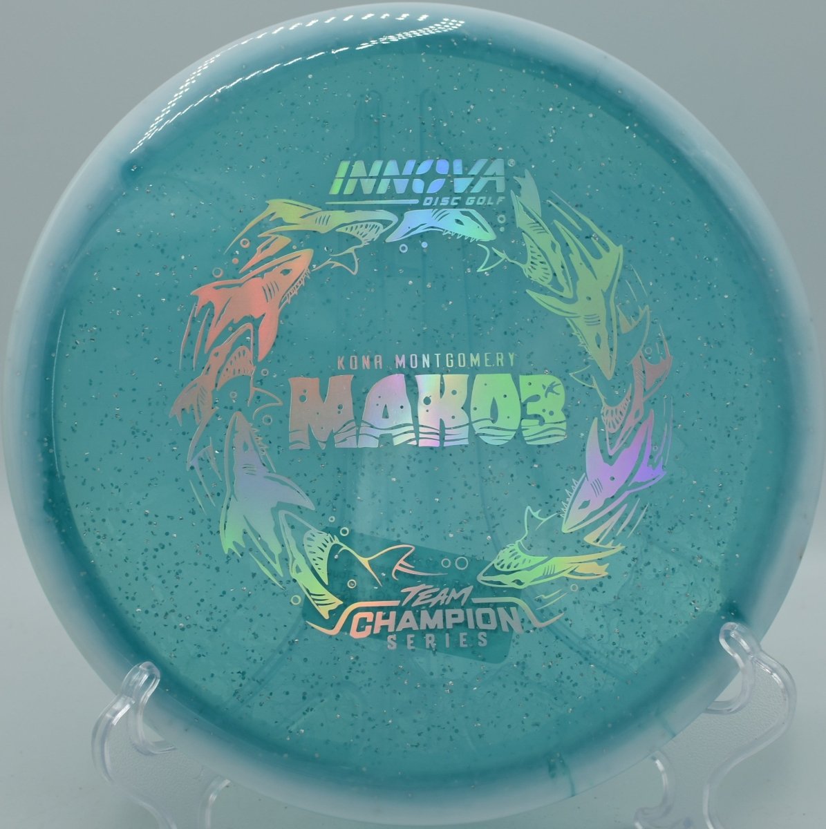 Halo Champion Metal Flake plastic combines Innova’s most durable Champion blend with embedded metal flake and a Halo-style rim, delivering premium feel, long-lasting flight integrity, and striking visual appeal. The added stability helps the disc resist turn while preserving the Mako3’s signature straight finish.