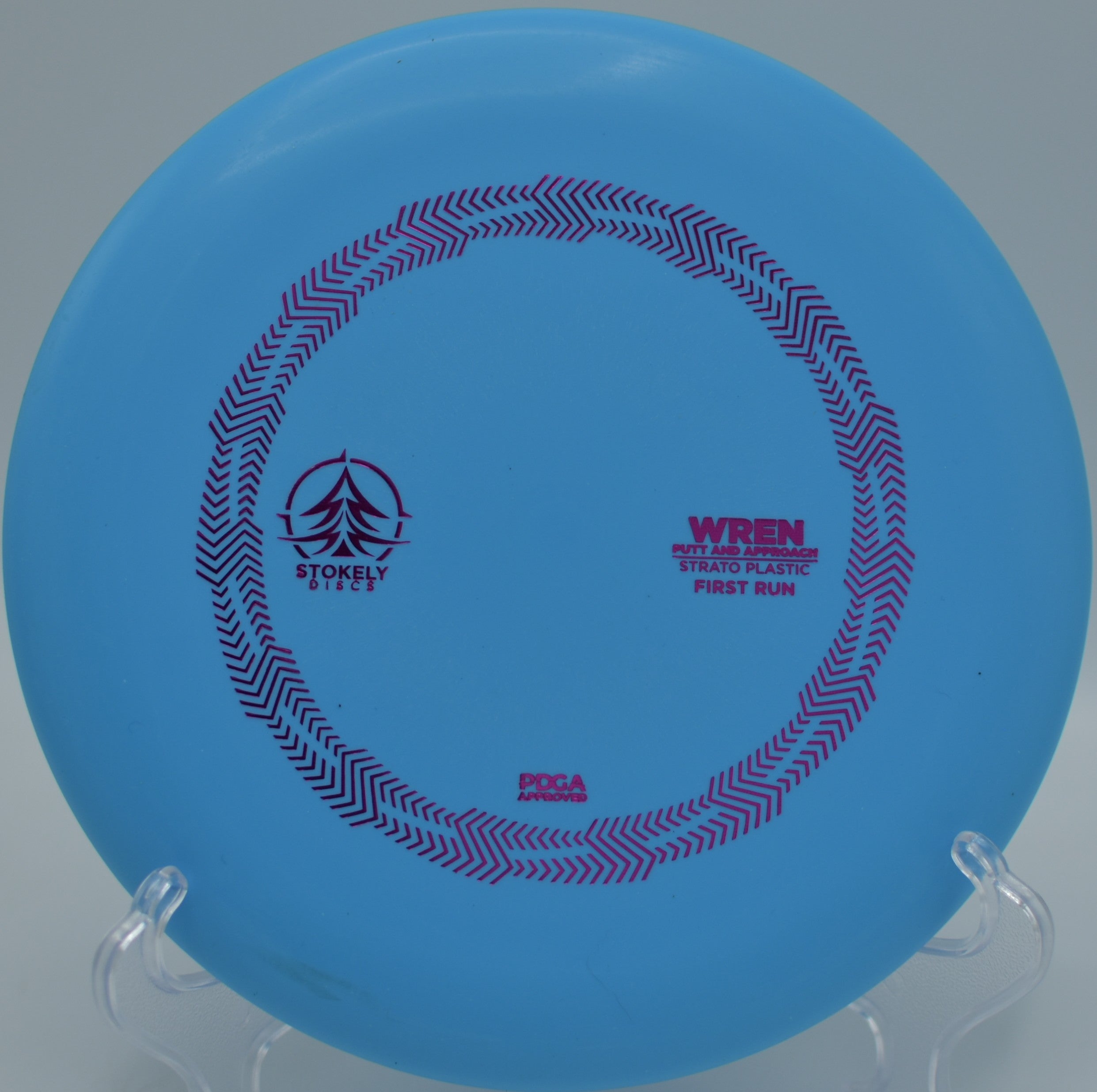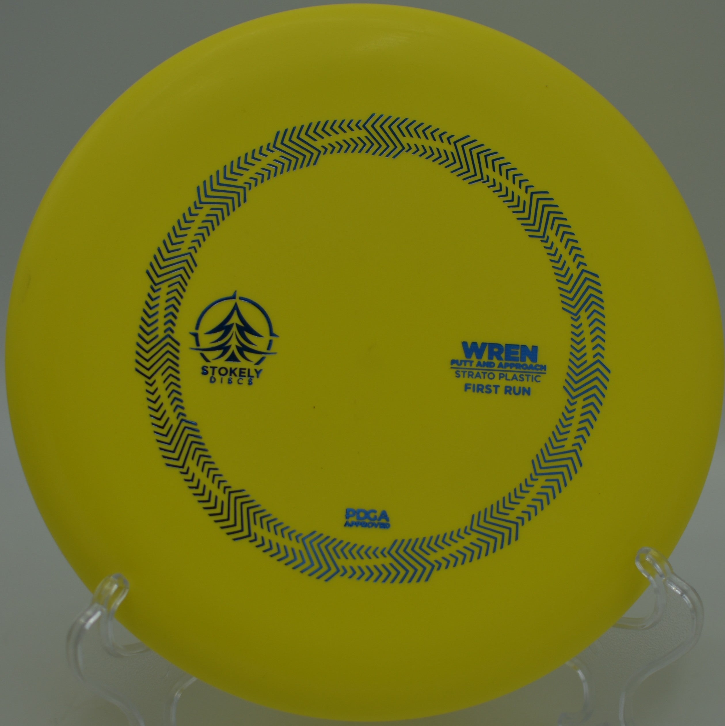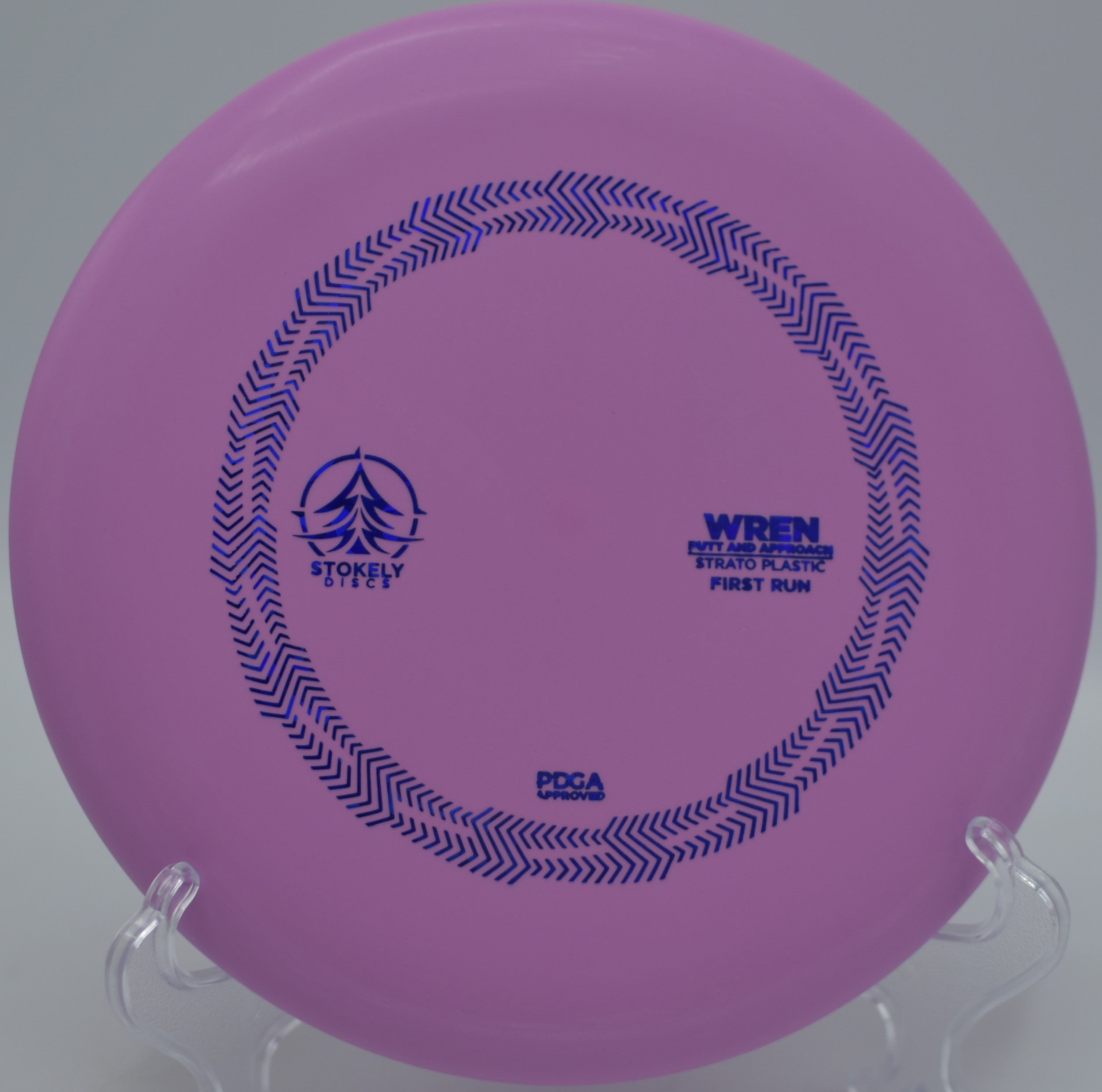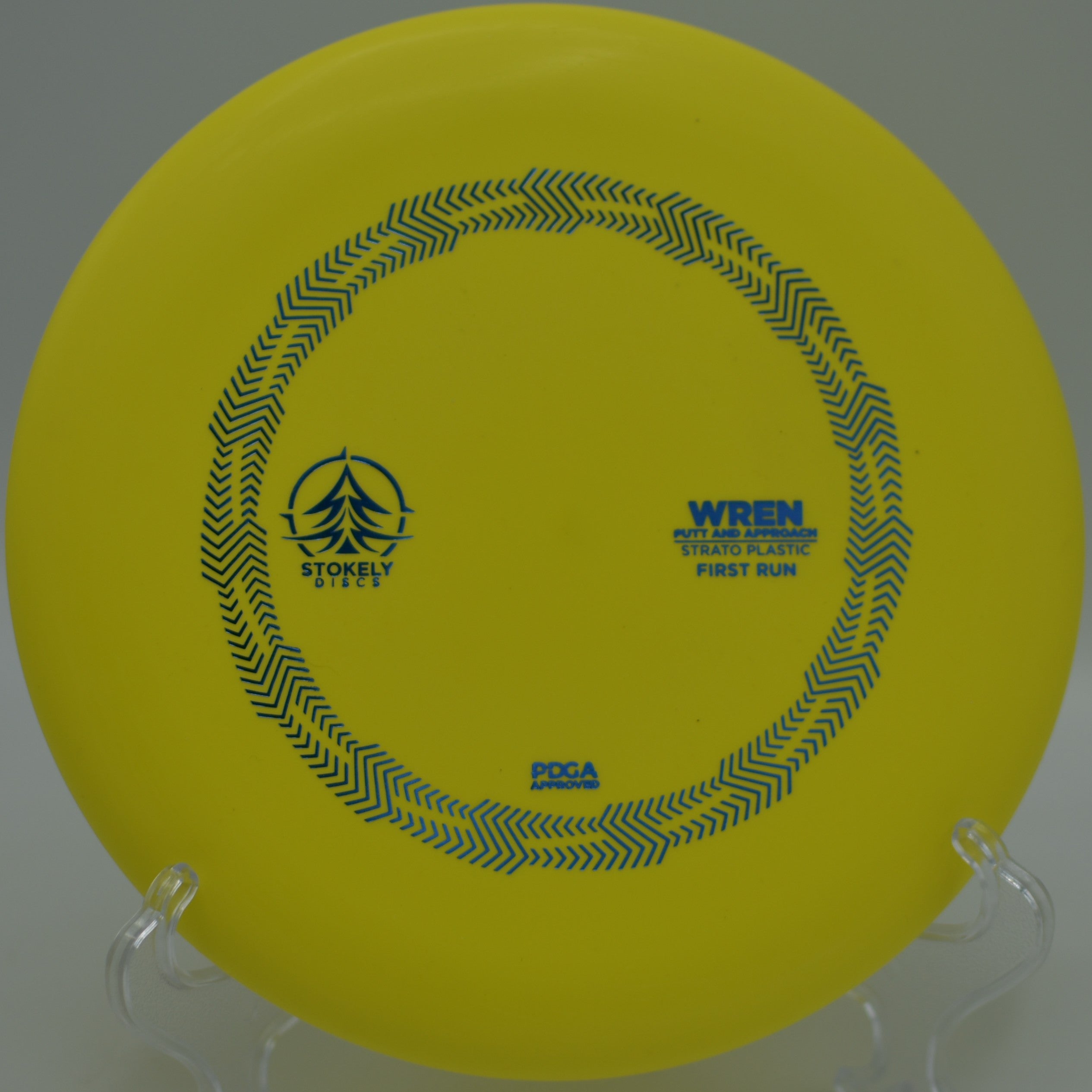 The Stokely Discs Strato Wren is a neutral-stable putter built for glide, control, and consistency. With flight numbers 3 / 3.5 / -0.5 / 1, the Wren delivers a smooth, accurate flight with minimal turn and a gentle fade, making it perfect for confident putts, touch approaches, and short drives that demand precision.
