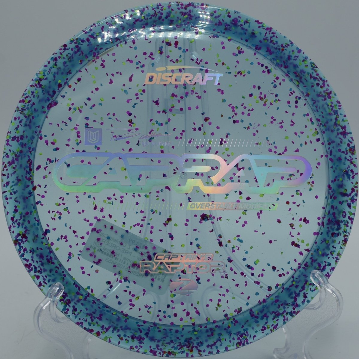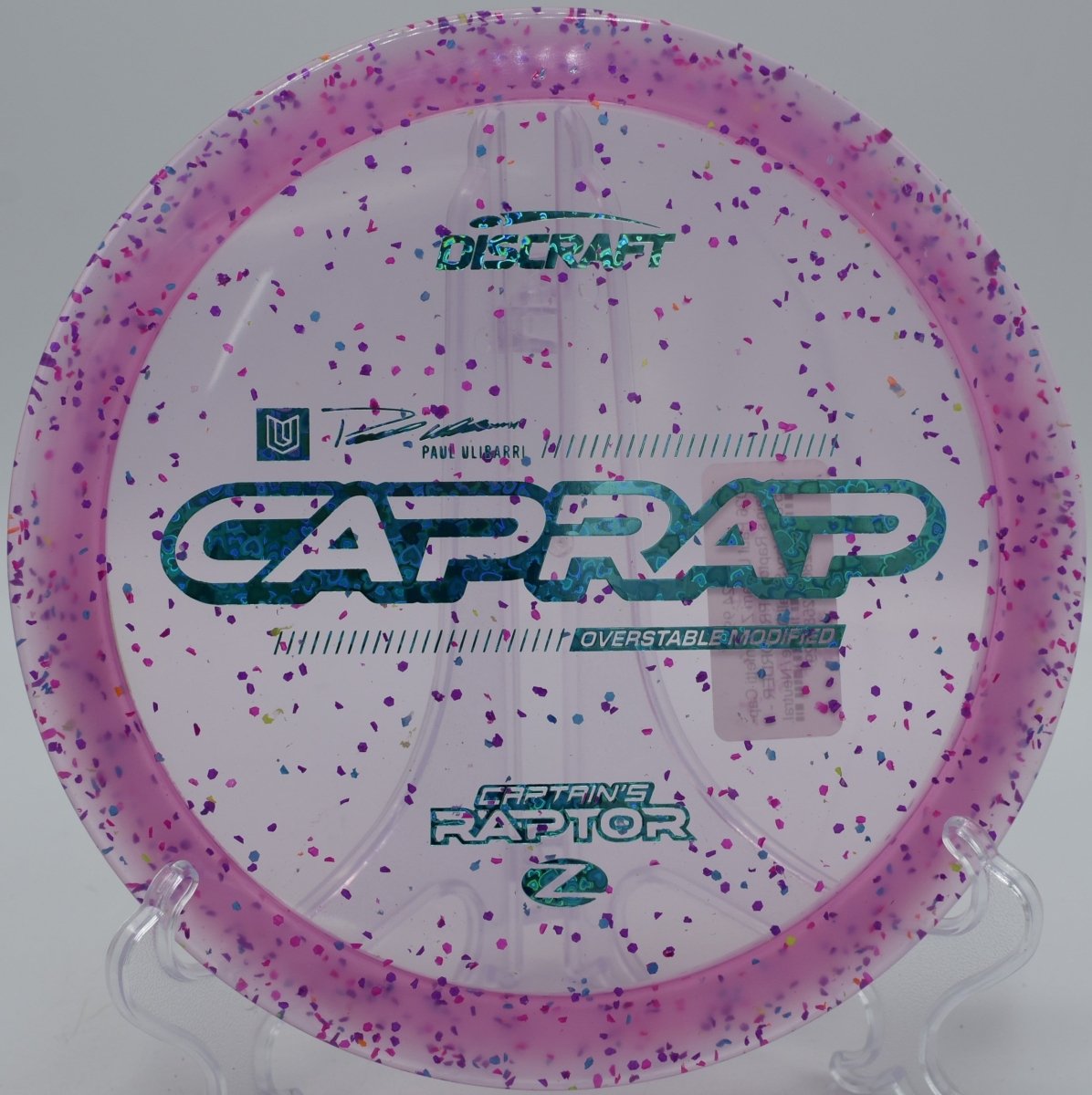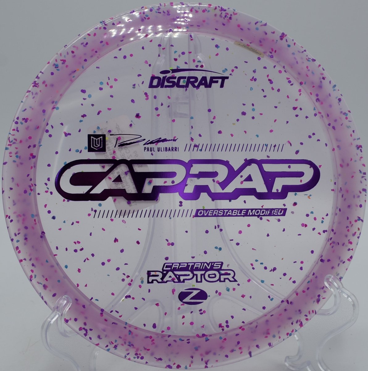 The 2026 Paul Ulibarri Z Confetti Captain’s Raptor is a premium overstable fairway driver from Discraft, engineered for power throwers, forehand specialists, and players who demand consistent fade in all conditions. This Tour Series Captain’s Raptor is molded in durable Z Confetti plastic, offering long-lasting stability, excellent torque resistance, and eye-catching visual appeal.