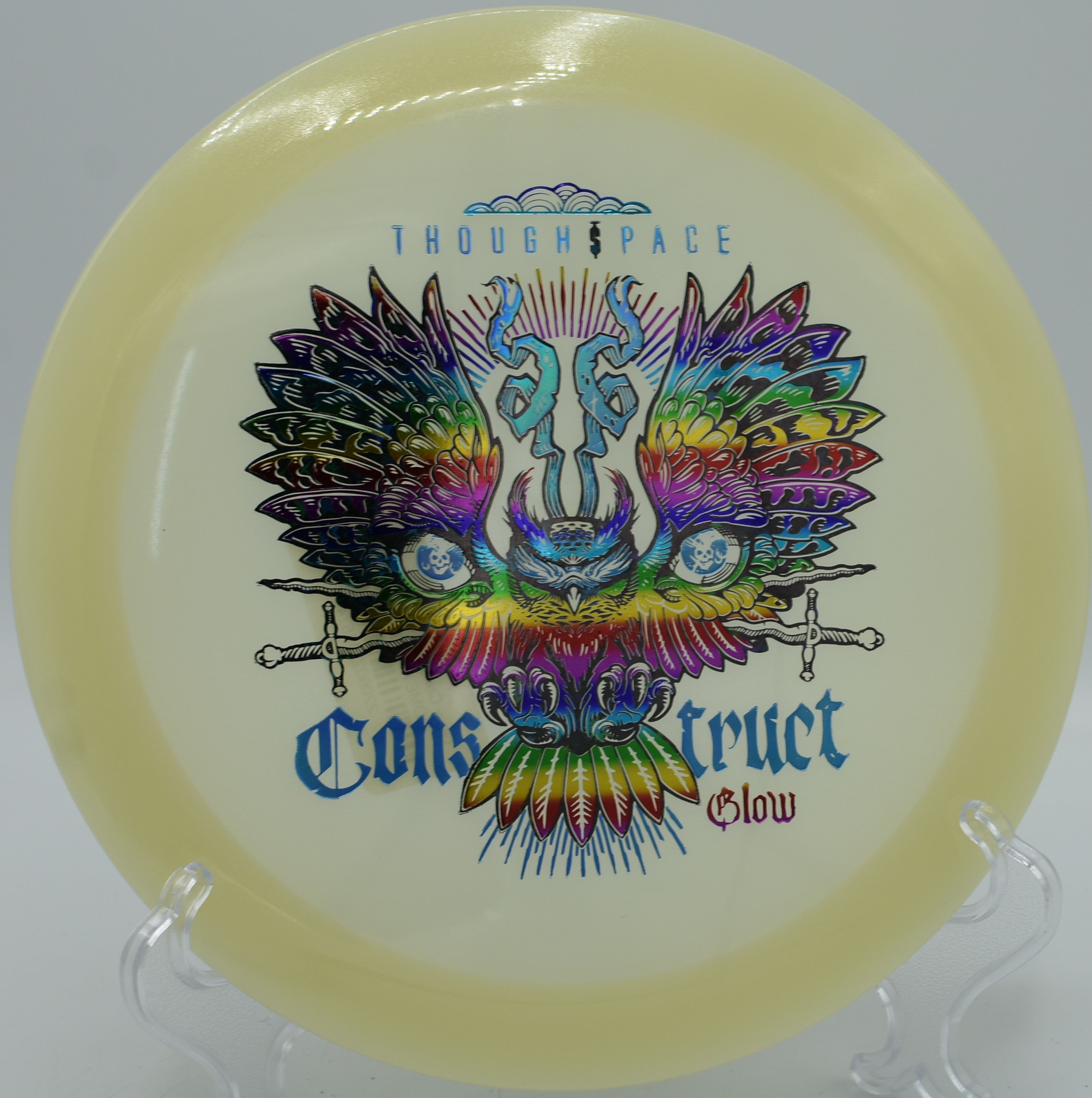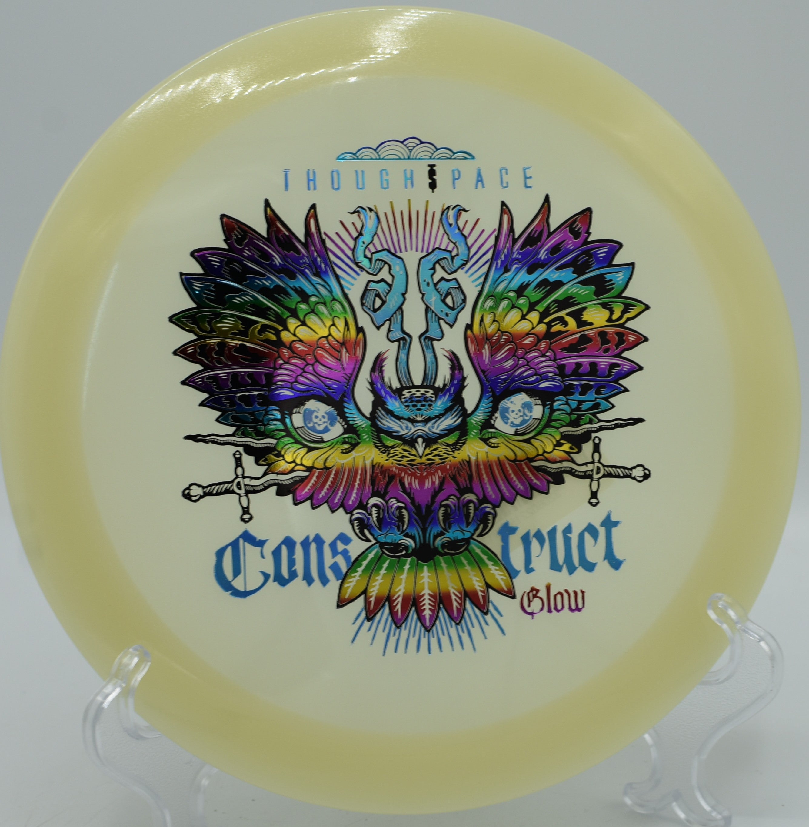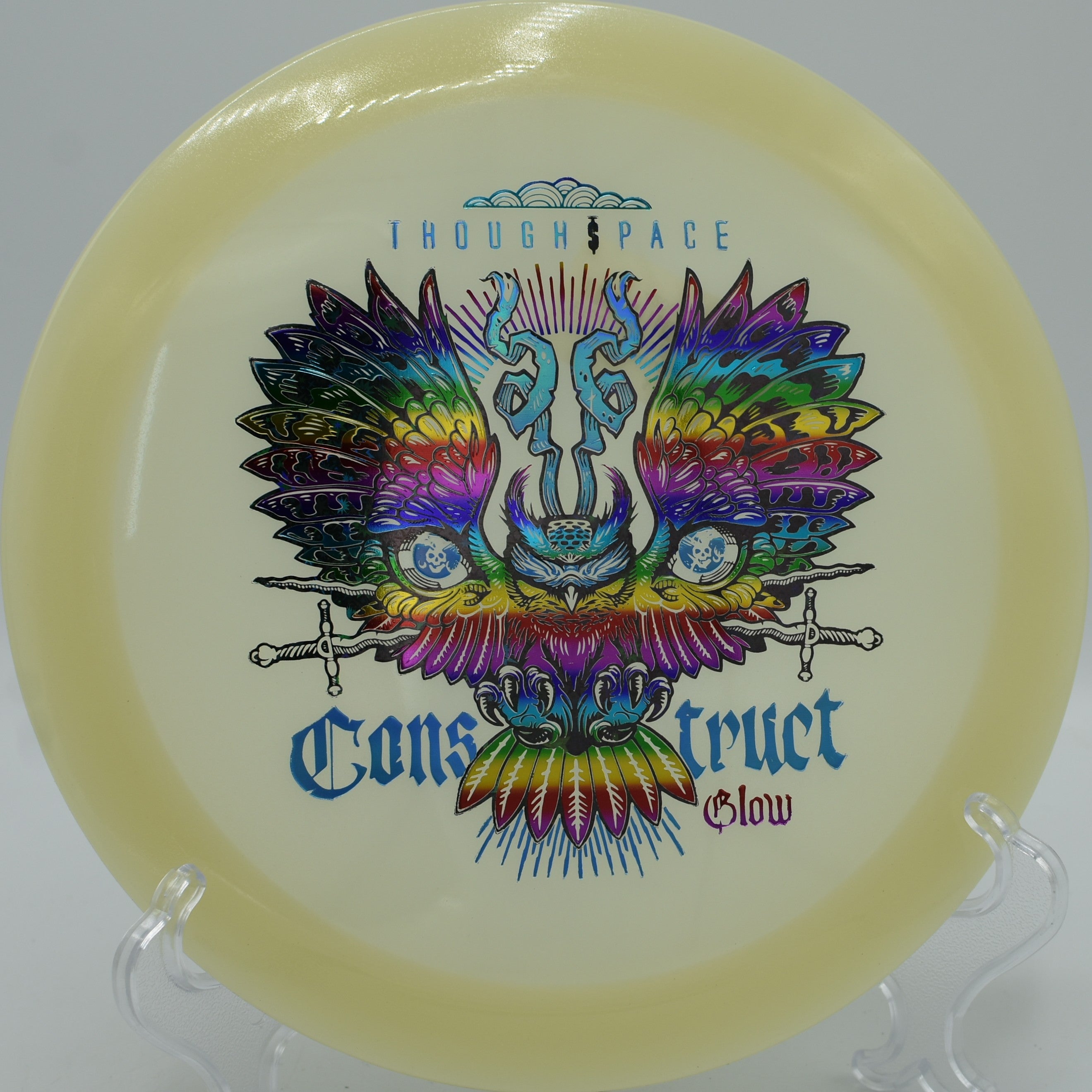 The Thought Space Athletics Glow Construct is a stable distance driver engineered for glide-forward carry, controlled high-speed turn, and a dependable finishing fade—now molded in high-visibility glow plastic for night rounds and low-light play. With flight numbers of 10 | 6 | -1 | 2, the Construct delivers impressive forward push with subtle drift before finishing with reliable fade, making it ideal for shaping long flex lines, controlled hyzers, and confident placement drives.