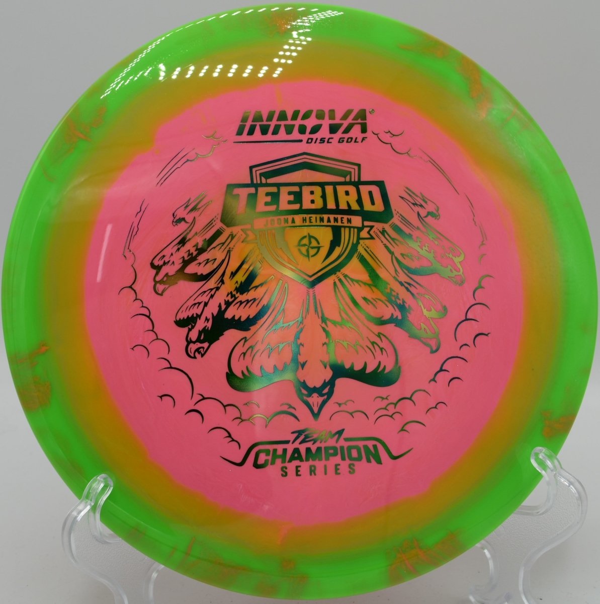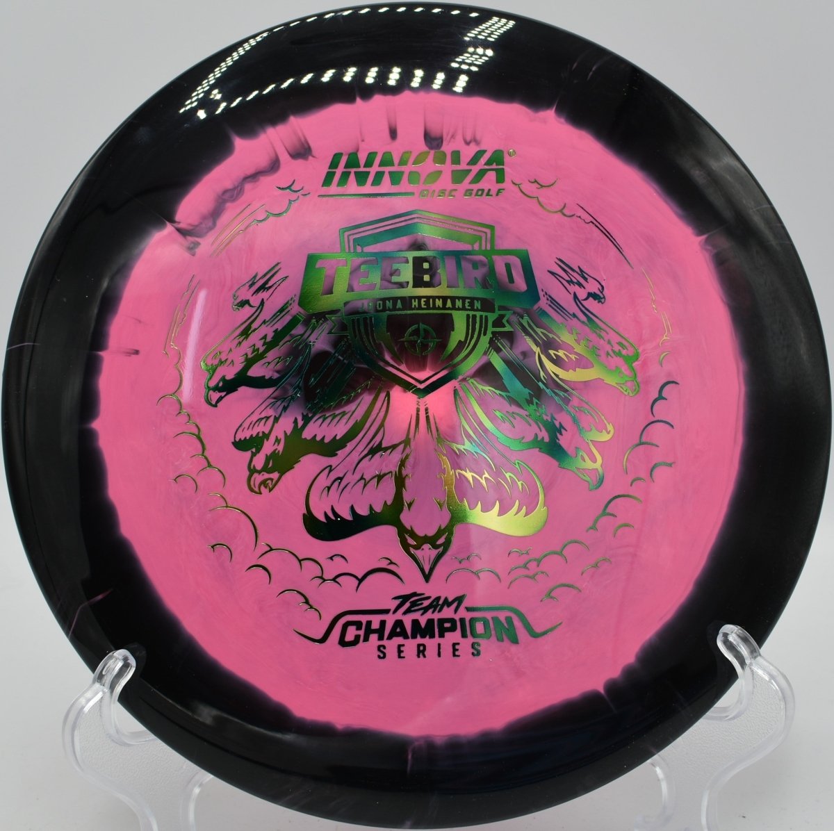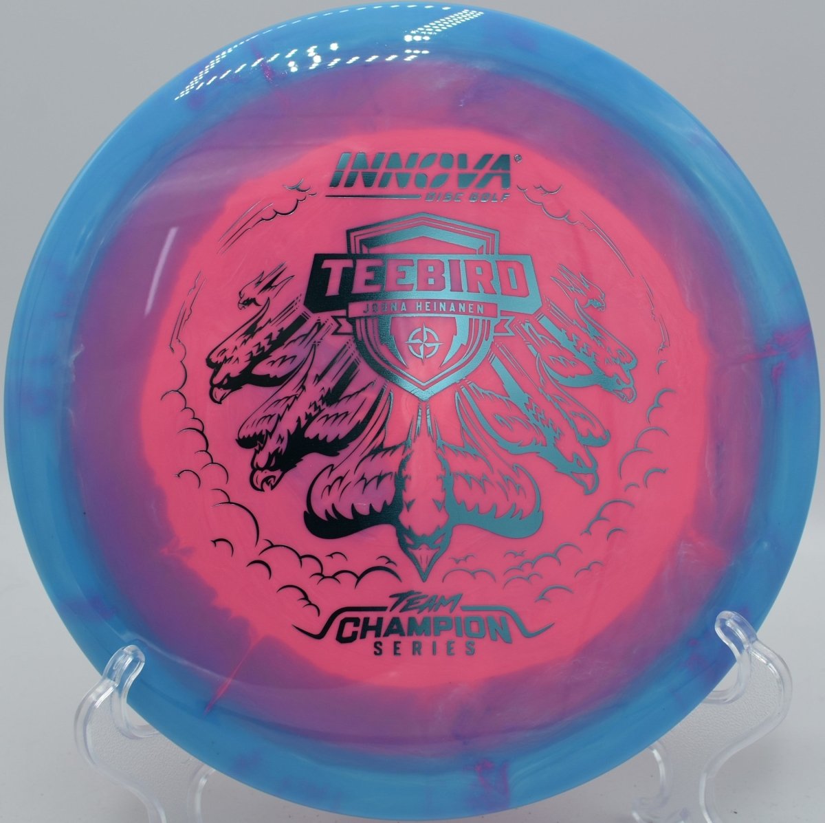 Molded in Halo Star plastic, this TeeBird features a grippy, premium feel with enhanced durability and a touch of added stability compared to standard Star runs. The Halo construction concentrates weight toward the rim, increasing torque resistance and consistency while also creating the signature two-tone visual effect that stands out in flight. Produced by Innova Disc Golf, the Halo Star TeeBird excels on straight drives, controlled hyzers, and placement shots where accuracy is critical.
