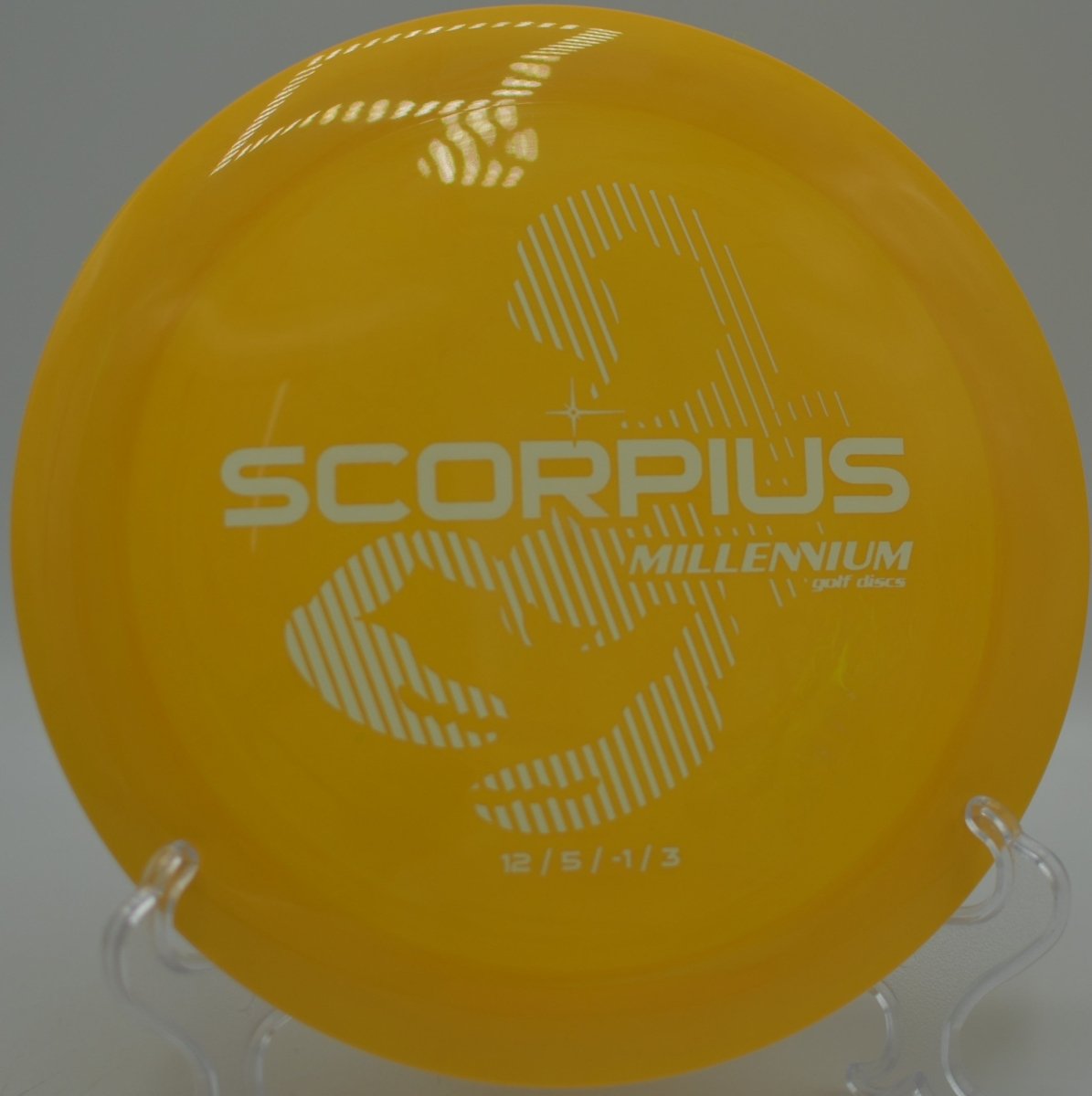 The Millennium Scorpius is a high-speed, overstable distance driver that players often compare closely to the Innova Destroyer—offering powerful flights, wind-resistant control, and dependable fade. With flight numbers 12 / 5 / -1 / 3, the Scorpius provides slightly more high-speed turn than a traditional Destroyer, giving it smoother flex lines and added distance potential for players with strong arms. Across different runs, stability can vary—from workable overstable flights to extremely beefy, torque-resistant bombers—ensuring there’s a Scorpius for every shot in your distance lineup.