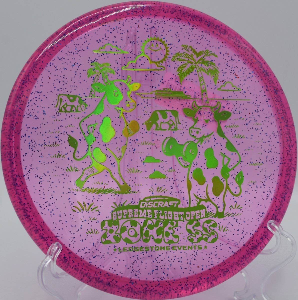 Molded in SFO CryZtal Sparkle plastic, this run combines premium durability with a crisp, firm feel and added visual pop. The Sparkle blend maintains consistent stability while providing clean releases and dependable fade. Its firm structure promotes reliable torque resistance and predictable ground interaction, making it ideal for precision approaches and confident green-side control.